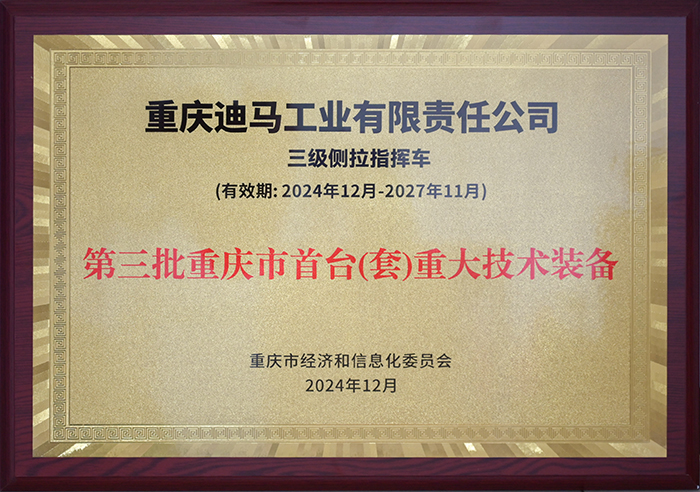 2025年,重慶市首臺(tái)(套)重大技術(shù)裝備新產(chǎn)品發(fā)布會(huì)暨重大技術(shù)裝備成果展在重慶悅來(lái)國(guó)際會(huì)議中心舉辦,迪馬工業(yè)研發(fā)生產(chǎn)的三級(jí)擴(kuò)展通信指揮方艙榮獲第三批重慶首臺(tái)(套)重大技術(shù)裝備。
