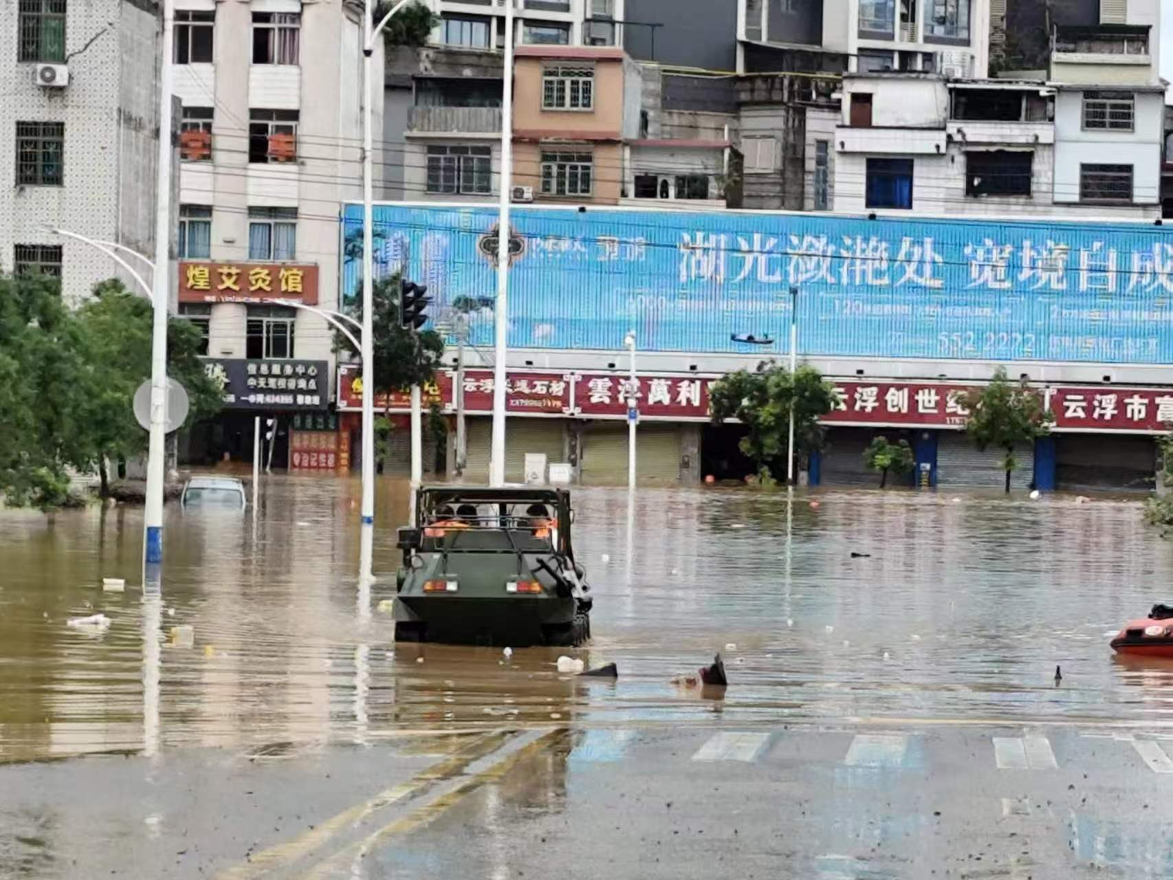 水陸兩棲車突破洪區(qū)封鎖,深入核心災(zāi)區(qū)