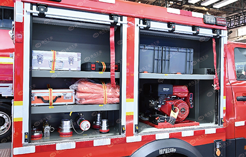 車輛采用東風(fēng)猛士MS600底盤,具有超強(qiáng)的越野性能,車輛搭載400L水+50L泡沫滅火劑,可將機(jī)動消防泵固定在車尾,通過泡沫泵正壓加注泡沫,出水流量反向控制泡沫泵轉(zhuǎn)速,從而達(dá)到控制泡沫混合比例。車輛配備直流水槍和水霧噴槍,適用于狹窄街道、巷道、城鎮(zhèn)小道以及蜿蜒山路等地形,對于撲滅初期火災(zāi)或控制初期火勢曼延具有良好效果。車輛還設(shè)有破拆器材、救援器材備用存放區(qū)域,滿足基本救援需求。